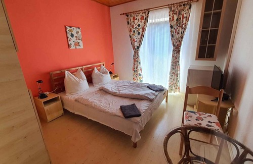 The holiday room is located in an apartment house, renovated in 2021 and is modern and functional furnished. The property is located in a residential area. The domicile is also popular because of the quiet and sunny location.For common use are available: sunbathing area, parasol, children's playground, swing, sandpit, grill possibility, garden furniture and fire place. Children's slide.LocationSiófok. The holiday room is located on a 700 sqm, closed garden plot with meadow, flowers, bushes and trees, limited by a fence. The landlord does not live in the house or on the property.The room is particularly suitable for two people.The access goes via a side road (asphalted). Parking lot (for 4 cars) on the property. Specialair conditioner. Facilities: children's toys, cot, high chair and internet access (WLAN). TV reception takes place via satellite. PoolOutdoor pool (3 m x 6 m, depth 1,5 m, for common use). The pool facility can be used from mid of May to mid of September. Leisurefitness equipment. Dogsnot allowed. DistancesShopping opportunity 30 m, restaurant 800 m, town center 2,5 km.In summer: Lake Balaton with beach 800 m in Siófok. DivisionHoliday room, 1 floor, 1 rooms (including 1 bed rooms), 20 sqm, in total 2 beds. RoomThe entrance in your holiday room is located upstairs. Bedroom (13 sqm) with 1 double bed, 1 additional bed (only suitable for children under the year of 2), TV and access to the balcony. Kitchenette in the hallway (5 sqm) with gas stove, oven, fridge (icebox), microwave, coffee machine, toaster and electric kettle. Bathroom (7 sqm) with shower, 1 sink, WC and hairdryer. Terms of lease and pricesIncluded in the priceOutdoor pool, babycot, internet access, parking place, electricity, water, final cleaning, pool, sunloungers, bed linen (first usage), baby cot – please order at booking, Wireless Internet access. Side costs-Costs on the spot:/Obligatory:local tax by local tariff.On request: For a fee: air conditioning.Deposit:No deposit.