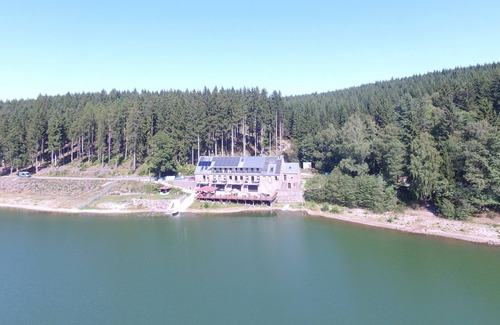 The location in the middle of the Thuringian Forest at 600m altitude near Oberhof and Rennsteig, directly at the idyllic Lütsche reservoir, a bathing lake with excellent water quality (listed as EU bathing water).
