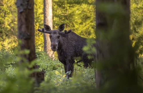 The holiday home is peacefully located right in the middle of nature and with a lot of forest areas, wild animals like elks and wild boars around.