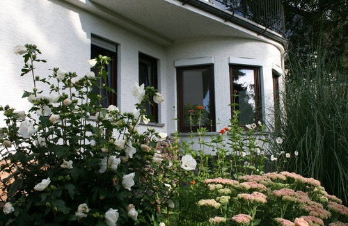 The apartment is located in a quiet residential street (dead end) in the basement of a two family house and has its own entrance. From the bay windows of the living room you can enjoy the view over the iLandstraße into the undeveloped valley. When the weather is nice, you can spend your time on the terrace belonging to the apartment and use the charcoal grill.