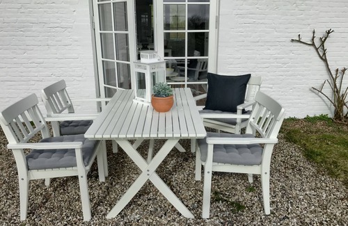 This tastefully and comfortably furnished apartment was renovated and redesigned in 2016/2017 with great attention to detail. It is located outside the idyllic village of Wasserkoog, directly behind the old sea dike. In the south, the garden borders directly on the "Altneukooger" Sielzug (a picturesque watercourse that serves to drain the surface) and offers a wonderful view from the terrace over the landscape and vastness of Eiderstadt.