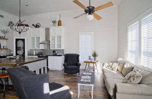 A building filled with character and charm built in 1877, one of only a few that survived the hurricane of the 1900's. The unique twist of the building is what we fondly refer to as "character". Located on the square, a private brick paved courtyard with large oak trees to unwind or simply enjoy the quiet that our small town has to offer. Shops are within walking distance or just minutes drive from eating establishments. The 2 bedrooms share a Hollywood bath (each bedroom has it's own vanity and toilet but share a claw foot tub/shower enclosure). The first bedroom has a queen and a twin. The second, has 2 full size beds. In addition, there's a hall half bath. The kitchen is fully equipped with the basics for meal preparation along with breakfast cereal, coffee and tea. Washer and dryer available for guest use. Minimal parking in the rear or free street parking in the front. No parking or blocking of the side or back alley. Free WiFi, Netflix and TV with 50+ local channels, DVD player