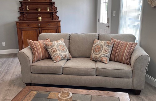 This charming historical apartment building with 7 individual suites has been completely renovated and turned into modern style suites minutes from The Ark Encounter. You will love this cozy 2 bedroom suite that comfortably sleeps 4, this unit is located on the 1st floor. Less than 5 minutes from The Ark Encounter & only 45 minutes from The Creation Museum. You will find we are a short walk from charming downtown Williamstown where you will find shops & dining. We are 45 minutes from Lexington, 35 minutes from Cincinnati and 90 minutes from Louisville.