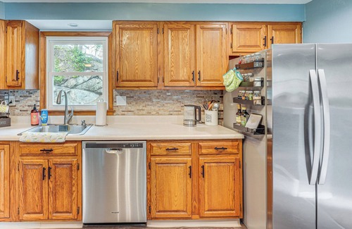 There’s plenty of breathing room for the whole crew when you stay at this Highland Falls, NY, vacation rental. Whether visiting your cadet at West Point, getting out on the river, or exploring stunning state parks, you’ll have the Hudson Valley at your fingertips with this cozy and inviting 4-bedroom, 2.5-bathroom home as your base. Spend your downtime peering through the telescope or huddling up for a movie night.