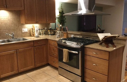 The gourmet kitchen is fully equipped for all your cooking desires.