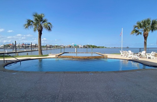 The condo is located on Pleasure Island with gorgeous views of Pleasure Island Marina and Sabine Lake from the newly constructed balcony. The condo complex has a pool and outdoor grilling patio with fireplace. There are plenty of chairs to sit back and relax after a long day with a beverage of your choice. Sunrises, sunsets, and seabirds are plentiful. The island has numerous locations to fish, a disc golf course, and walking trails as well.