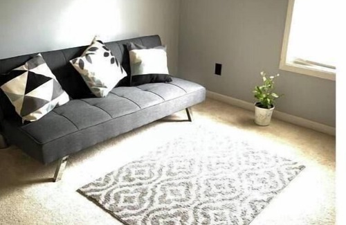 This spacious Ranch home has three bedrooms, two of the bedrooms have a queen size bed, third bedroom is a designated work space with a writting table and a futon (couch) which can easily accommodate another guest.