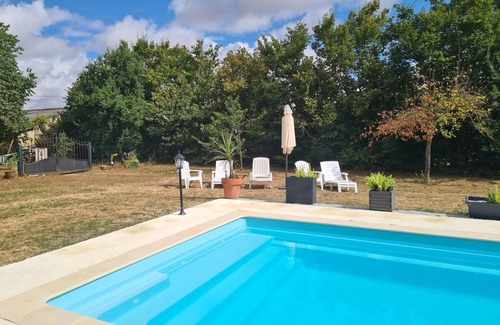 The private swimming pool can only be accessed by the back garden through a secure gate at specific opening times during the holiday season when open for gites guests only to use.