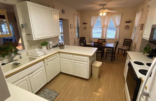The kitchen is fully stocked for any meal preparation or a gas grill that you can grill your steaks/burgers/chicken or salmon on the patio.