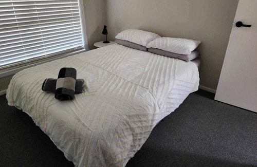 Relax with the whole family at this peaceful place boasting 3 bedrooms each with a queen bed and 1 double pull out sofa bed in the living room. 1 Bathroom, kitchen/dining room, family/tv and outdoor entertaining area with BBQ. Nestle in a quiet residential street, close to shops, cafes, restaurants and golf course. Walking distance to the park.