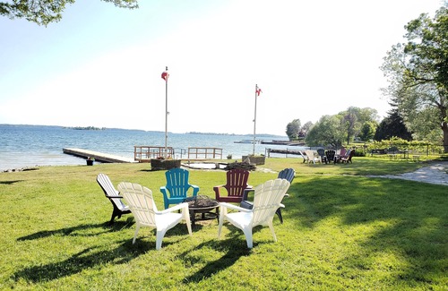 Welcome to our stunning stone cottage in the heart of the 1000 Islands, on the St. Lawrence River waterfront. Enjoy the most beautiful views and colorful sunrises & sunsets. Swimming, canoeing and fishing are right on our doorstep. We have a large outdoor area and firepits, seating, private beach, patio with gas BBQ, 110' x 8' boat dock and high-speed internet. 37 km of hiking/biking trails are just across the road. We are only 3 min from the historic downtown and restaurants, stores, cruise and casino.
