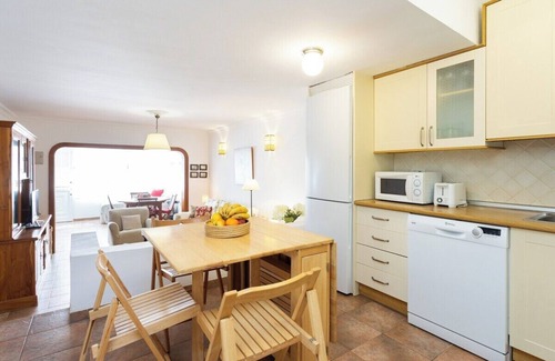 The apartment has a kitchen equipped with refrigerator, microwave, dishwasher, blender, kettle, toaster, coffee maker, juicer, hair dryer, washing machine, dryer, iron, towels, sheets, crib, high chair and much more.