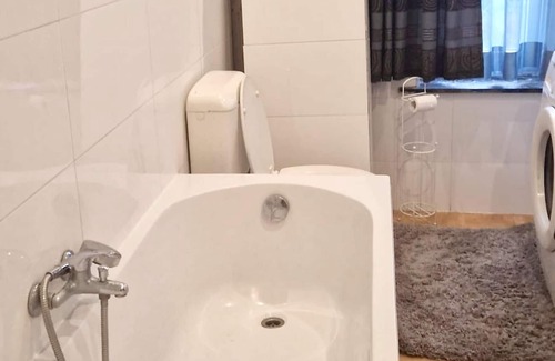 The house features central heating, cleaning products, a fan, ironing equipment, a vacuum cleaner and a washing machine.