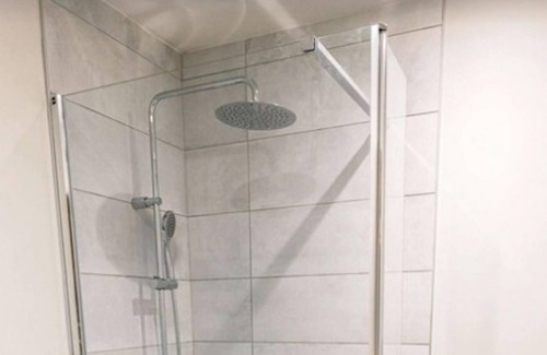 The studio has a double bed. The bathroom is fitted with a shower and a toilet.
