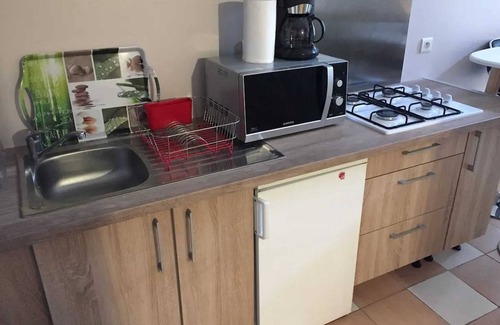 The property features a bright and friendly living room, perfect for unwinding after a day of adventures. Here you will find comfortable furniture and modern amenities to ensure a pleasant stay. The kitchen is fully equipped with everything needed for cooking, making it easy to whip up delicious meals at home.