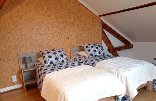 The house has 5 comfortable bedrooms, 1 including 2 single beds and a private bathroom with a shower, and 4 including 2 single beds, Several bathrooms are available, one with a bathtub and a toilet and one with a shower and a toilet.