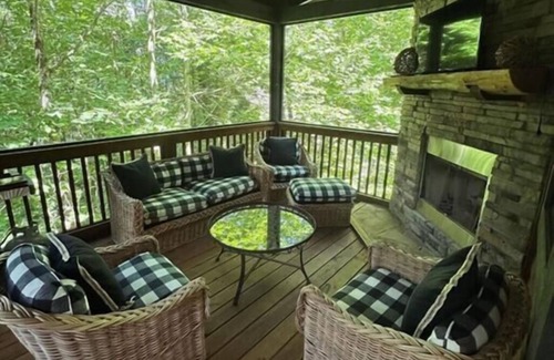 Step outside onto the large screened in porch and enjoy plenty of comfortable seating to enjoy the wooded view and cool mountain air. Porch includes a wood burning fireplace and gas grill.