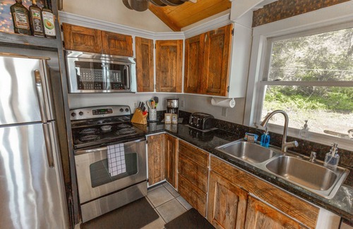 This custom built home has EXCLUSIVE private beach access, a private outdoor spa, fully equipped kitchen, and granite shower in the bathroom. The spacious living room is nicely furnished with overstuffed leather seating, hardwood floors, Youtube TV, satellite WiFi & more. Glass French doors open from the living area to the romantic bedroom furnished with a Queen bed, luxurious linens and tasteful appointments. The unique floor plan includes an open staircase to the lofted sleeping space where an additional Queen bed and futon are located. Stroll down the private path to the crashing surf and enjoy the solitude of the sandy beach and nature's ocean lullaby.