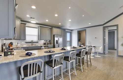 The heart of Honu Beachfront is on the second level, where the kitchen and living area merge to create an inviting conclave for the entire family. The large peninsula in the kitchen provides plenty of workspace and eating area for guests while looking out to both a beachfront and bayside view. The kitchen is fully outfitted stone counters, sand stainless appliances, with dishes, glassware, pots and pans, coffee pots and any other kitchen tool the cook may need. This home is covered in beautiful wood-look tile flooring throughout. The living area has soaring ceilings with a wall of windows that showcase stunning beachfront views. The contemporary sectional leather sofa will accommodate many guests who may want to sit around the extra-large flat-screen television. Stone flooring and granite vanities in both bathrooms. Enter the very spacious primarybedroom with en suite bath. Primaryfeatures a king bed (sleeps 2), ceiling fan and television, and breathtaking gulf views. The second bedroom features two full-size beds with a pull-out trundle television and ceiling fan. The third bedroom also features a queen with a twin trundle.