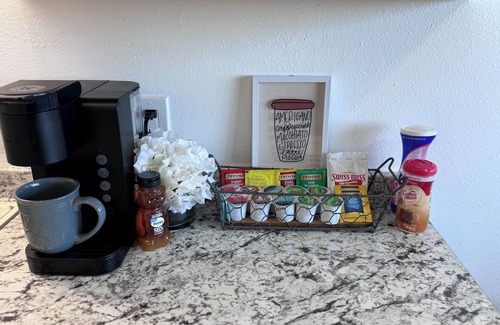 The kitchen has everything you need to cook a meal. We have A/C and Wi-Fi. And coin operated laundry in building.