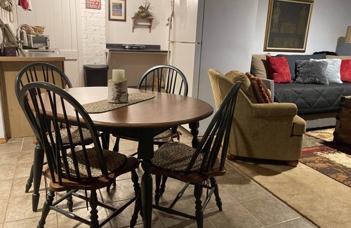 Cozy 1 bedroom/bath with kitchenette, family room, TV and WiFi. This is a basement walkout rental unit with private entryway, parking, patio with grill and dock space available for your boat.