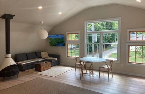 This memorable place is anything but ordinary. Enjoy the simplicity of Scandinavian design in a spacious, light- filled studio guesthouse. Everything has been newly renovated and attention to detail has not been spared. This studio features: a mid century fireplace, gourmet kitchen, tiled in shower with heated bathroom floors. There is also garage parking available, an outdoor fire pit, and bicycles to enjoy. Centrally located, walking distance to quaint downtown Hopkins.