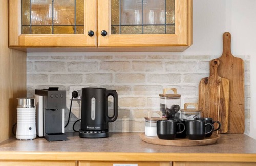 The adjoining dining area seats four, with the fully equipped kitchen featuring an oven, dishwasher, coffee machine, NutriBullet, and all cookware essentials. Whether you're whipping up a full meal or just a beach picnic, everything is within reach.