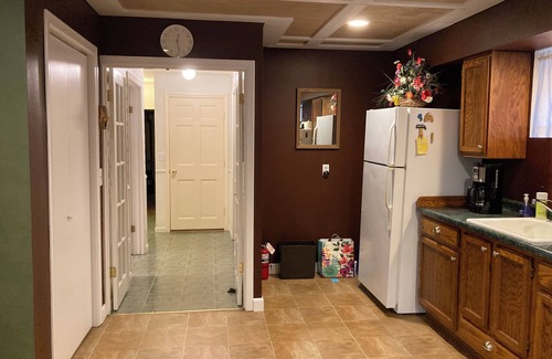 This rental is the ground floor inside a 2 level ranch-style home. This rental is located in a mature woodland of a quiet rural subdivision. Guests enjoy spacious bedrooms, private entrance and a private bathroom in addition to a kitchenette. The main kitchen is shared and available upon request.