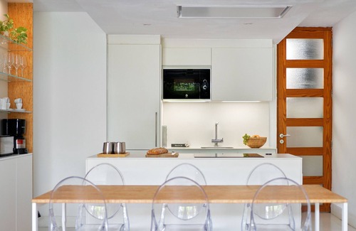 Dishwasher, oven/microwave, vitroceramic hob, toaster, juicer, moka coffee maker, drip coffee maker, kettle, blender, kitchen utensils, kitchen knife set and 6 sets of crockery, glasses, breakfast cups and coffee cups.
