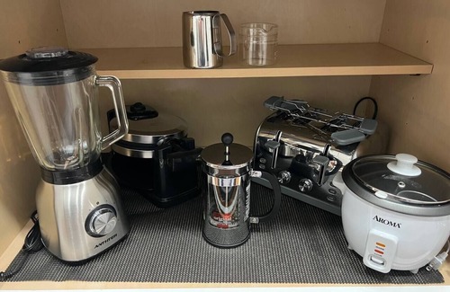 The living room has been fitted with a comfortable transformer couch and plush pillows. Cozy up while enjoying your favorite shows and movies on the smart TV, paired with high-speed WiFi and a full entertainment system. No need to miss out on watching your favorite series even while away. Fancy a few games during your stay? We have plenty of fun board games to play with family and friends.