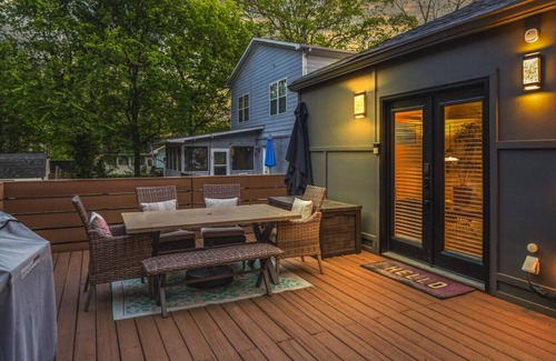 Explore ATL from the The Bubbley Suite apartment, our centrally-located remodeled 1920s cottage with all the comforts of home. Just 1 block from MARTA, 15min drive to airport, and 10min walk to Little Five Points & Inman Park restaurants & bars. This private studio was added to our home in a 2021 remodel including the spacious back deck w/ outdoor dining and HOT TUB. Wet bar with sink, microwave/oven, coffee, and mini fridge+freezer, and a spa shower. Pup friendly (just let us know)!