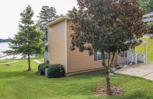 Overlooking a vast lawn with the Weiss Lake shoreline just beyond, this roomy home boasts gorgeous views and a private pier for boating, fishing and sunbathing. Directly across the street is a picnic area with swings and a basketball court, and the Villa Pool is a short walk away. Bedding arrangements are a King bed in the master bedroom, Queen and twin bunks in one secondary bedroom, full bed in another, Queen bed in the main floor bedroom, and a pull-out Queen sleeper. TVs are flat-screen with cable access.