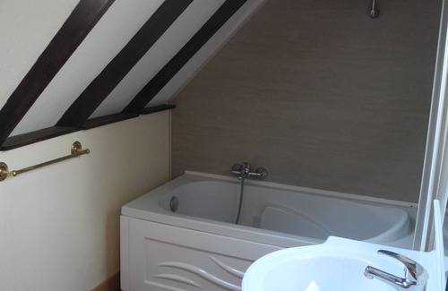 Upstairs, you can put your suitcases in the south bedroom with a 140 cm bed and private bathroom or in the bedroom with 2 90 cm beds