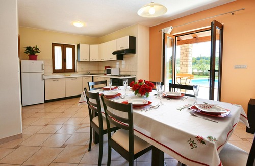 Villa 377 is situated in Sveti Lovreč (Region Istria). Villa 377 is located 3000m from the center and 18000m from the beach. In Villa 377 pets are welcome. Villa 377 has 1 accommodation unit. House 377/857 has 6 beds (basic beds: 6 and extra beds: 0). The area of the apartment is 115m2 and is situated on the ground floor. House 377/857 has: Air condition, Internet, Tv, Satellite TV. Distances: post office 3000m, emergency room 18000m, discotheque 18000m, other sports grounds 300m, gas station 18000m, restaurant 1000m, shop 3000m, center 3000m, sea 18000m, beach 18000m.