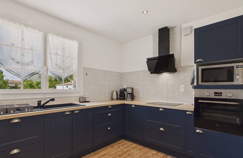 The interior of the house is bright, you will find a spacious, fully equipped kitchen, including induction stovetops, a refrigerator, a microwave, an oven, a freezer, a dishwasher, a filter coffee maker, a filter coffee maker, a Dolce Gusto coffee maker, a Dolce Gusto coffee maker, a toaster and a kettle. It opens onto the dining room, where you can share convivial moments and good meals around the large table. Finally, the living room with its gray sofa is ideal for those who want to take a break and relax in front of the television. Another adjoining room is equipped with a pellet stove that is at your disposal, and a red sofa, offering a quiet space to chat or devour a good book. A bluetooth speaker will allow you to listen to music (while respecting the tranquility of the place).
