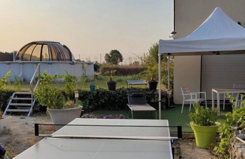 Set in the heart of a vast landscaped park of 4,700 m², this gite guarantees you unparalleled tranquillity. Enjoy a well-maintained outdoor area, including a dome housing a SPA for 6 people equipped with numerous jets. Three one-hour sessions per couple are included during your stay.