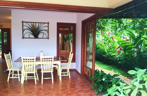 The property is located 2 kilometers from the beach Massaguaçu, it has three bedrooms (one en suite) and well ventilated areas. Great free barbecue area with pool and green. The building has a restaurant / convenience store and is close Gama Supermarket and other facilities around. The house is between two rivers themselves for swimming and close to different waterfalls - all the walkable distances. Ideal for those seeking the atmosphere of the beach very close forest.