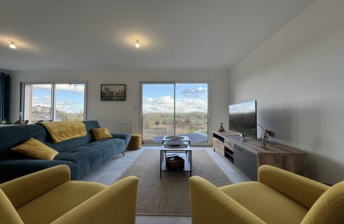 Perched on the peaceful hills of Montfort-le-Gesnois, Le Bellevue offers a stunning countryside escape just 30 minutes from Le Mans. This contemporary home is designed for those who appreciate space, light, and breathtaking views. Whether you're planning a relaxing family holiday, a remote work retreat, or a refined celebration, Le Bellevue provides the perfect setting with its panoramic terrace and serene surroundings. Inside, the house features three beautifully appointed bedrooms, including a master suite with a walk-in closet and private bathroom. A second modern bathroom, a dedicated office space, and a spacious open-plan living area with floor-to-ceiling windows create a bright and welcoming atmosphere. The fully equipped kitchen, elegant dining area, and expansive terrace make it easy to enjoy both indoor and outdoor living in style. Guests benefit from Rêve au Mans’ 24/7 concierge services, offering everything from breakfast delivery and private chefs to wellness treatments, transfers, and equipment rentals. With its blend of comfort, privacy, and high-end amenities, Le Bellevue is more than just a place to stay—it’s a place to unwind, reconnect, and savor the art of countryside living.