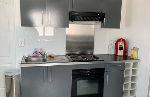 1 kitchen with oven, microwave, dishwasher, electric hob, fridge and freezer and all the necessary crockery for 6 people and a dining area.