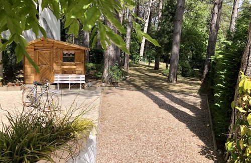 House in the pine forest with a bedroom with a large closet, a bathroom, a kitchen equipped, living room with two stitching, TV, a hair on wood, separate toilet, a terrace with garden furniture, a possibility course to return a car. 2 km from the beach, bike at disposal, 2 km d tree and adventure, miniature golf, sailing, restaurants 2 km.
