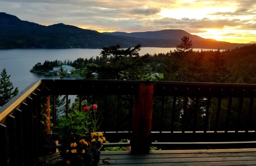 Take it easy at this unique and tranquil getaway that's close to town. Grab your favorite drink and find a comfy resting place on one of the three decks to watch the sunset over Cascade Bay and the Rosario Mansion. You can't get away from the beautiful San Juan views in this midcentury, cozy tri-level home. It comfortably sleeps 6 (with one King, one Queen, and one Queen pullout). Take a stroll right from the front door to Cascade Lake and Moran State Park. Nature and relaxation await you.