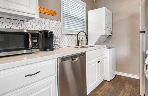 Stylish 2 bedroom with King beds in both bedrooms. This place is newly renovated in 2020 with new appliances, and quartz counters. The step-in shower is a real highlight. Located within an easy 8 minute walk to campus, even shorter to Northgate. You can see Kyle Field from the road out front and Downtown Bryan (4 mi) and Santa's Wonderland (12 mi) are just a short trip. This transitioning neighborhood is a colorful blend of Bryan community and Aggies.