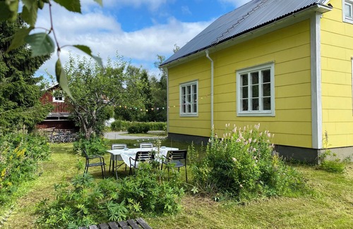 The house is located about 700 meters away from the Baltic Sea, on an island. Parking next to the house are given. Paths for hikers, MTBs, snowmobiles (rental in Örnsköldsvik) can be found in the nearby forest. A restaurant at the ferry port 1 km away invites you to stroll. The supermarket is about 1.5 km away. In the immediate vicinity are sports marinas, an experienced boat service, an illuminated cross-country ski trail, ski slopes and an ice rink (Bjästa). Do not miss a ferry ride to the UNESCO islands of Ulvön or Trysunda with their fishing villages. In addition, fish (pike, salmon) lure kayaking and swimming in the river, lake and sea. As well as the museum of local history and the new art park at Bruksvägen. At the end of the Holmener bay is the Balesuden National Park with its high red rocks. Also, a hike to the nearby virgin forests of the Skuleskogen World Heritage Park of the High Coast, with its cliffs, the High Coast Trail and Stone Age excavations. For families with children, this house with the park-like garden is ideal.