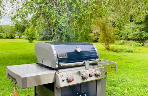Renovations recently completed including fresh paint, new carpets, new bathrooms, air conditioning and all new linens and bedding. The first floor has a large kitchen set up for anyone who loves to cook. The first floor has an open plan with plenty of space to relax with family and friends. The first floor also has a kitchen with wood stove, full bathroom, sunroom, living room and office with a pullout coach (queen size) and television. The second floor has three bedrooms, two with a queen beds, a full bathroom, and the master bedroom with a king bed with its own bathroom soaking tub and shower. The third floor is perfect for kids with two bedrooms; one has a set of twin bunks and two additional twin beds, the other bedroom has a full bed. The basement has a washer and dryer, ping pong table, and extra refrigerator/freezer. Outside enjoy the large yard that leads to the pond. Sit by the fire pit and watch the swans and deer over a cup of coffee or a cocktail. Plenty of space for outdoor yard games. There is also an outdoor shower to clean up after a beach day and a new grill and a large outdoor table that seats 10.