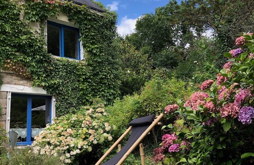 At only 30 minutes from the sea, in the heart of a luxuriant Breton nature, we propose you a halt in a haven of peace which extends on more than 5 hectares. You can walk there to discover a preserved nature. A garden of 9. 000 M2 occupies the back of a stone farmhouse and its well. It is a flower garden, but also an arboretum, with winding alleys, planted with old roses, including a collection of Lemoine, peonies, lilies, asters and other shrubby flowers. For lovers of roses, the period from May to June is particularly suitable to discover the spectacle of rose creepers, shrubs, or climbing, aged for some over 30 years!