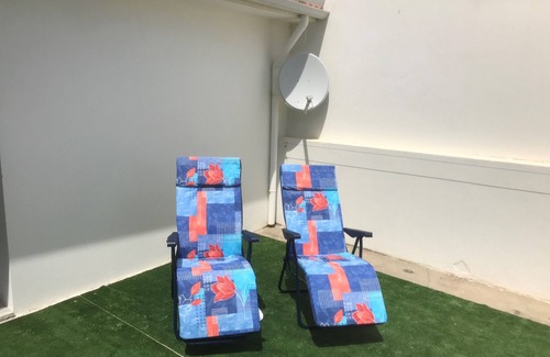 Ground floor house with double bedroom, living room with sofa for two people, fully equipped kitchen (oven, induction hob, microwave, grill, toaster, utensils for 4 people and washing machine), w. W. complete, private outdoor terrace with 24m "equipped with table and chairs, parasol and 2 sun lounger.