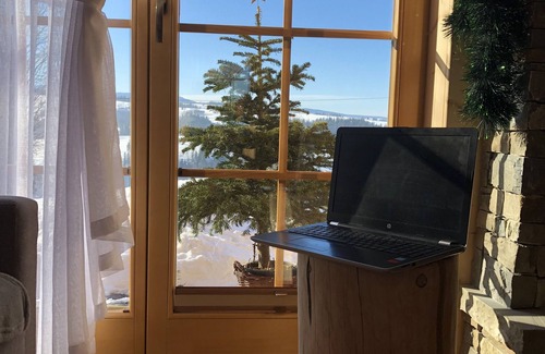 The object that we offer you is built of regional style logs. The interiors were decorated with carved highlander motifs, as well as hand-made furniture in the kitchen. The warmth of wooden rooms, subdued colors, and elements referring to the architecture of the Podhale region all make the interiors captivate with cosiness. This luxury house is equipped with a fridge, microwave, induction hob, dishwasher, TV and wireless Internet, and a toy corner has been prepared for children.