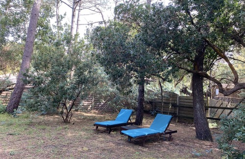 (Text automatically translated) ideally located detached house with garden on the edge of 44 acres, near the beaches of the Bay and the Atlantic Ocean surrounded by pine trees, environment dunes, pool, ocean, etc. .., large covered terrace of 18m2, garden,. barbecue, quiet etc ... bike paths nearby forest, oyster beds etc ...