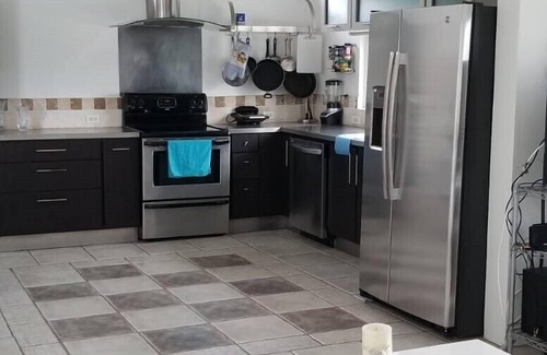 This fully air-conditioned 4-bedroom, 3-bathroom home offers comfort and convenience, with a private 12 ft x 20 ft pool featuring a shallow area perfect for children. Located in a private gated community, it’s an ideal retreat for families and friends to relax and gather. The backyard/pool area is equipped with a patio table, chairs, and BBQ grill for your enjoyment.