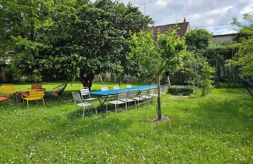 La Cerisaie is a large, cheerful and warm village house built in 1620 and fully renovated by an architect in 2012. In a quiet garden fenced with walls and perfectly secured for children with fruit trees and large hundred-year-old boxwood under which it is pleasant to take your meals or nap. The house with very thick walls stays cool when it is very hot outside. It is an ideal place for young children (games and inflatable pool) as well as for teenagers (table tennis, 5 bikes at your disposal and free tennis courts 200 m). The decoration is refined. It has a lot of charm. This property is composed of a main house with 4 bedrooms, bathroom and shower room and a guesthouse in the outbuildings (20 m from the main house). 2 very nice cats used to children live in the workshops and the garden. You do not have to worry about them. Linen for bed , towels for bathroom and tableclothes are included, aw well wood for the fireplace.